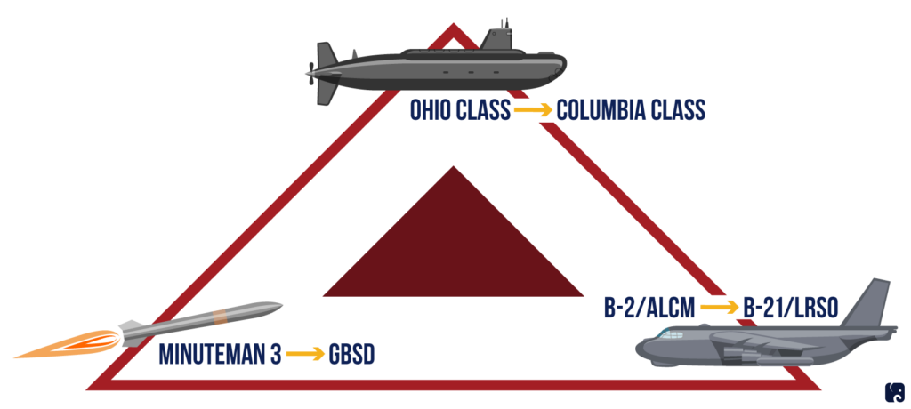 Een overzichtsbegrip rond kernwapens is de zogenaamde ‘nucleaire driepoot’. Dat wil zeggen kernwapens op onderzeeërs, in bommenwerpers en als intercontinentale raketten (ICBM) in silo’s op land. De auteurs nemen de positie in dat die laatste kernwapentaak niet nodig is en alleen veel, heel veel, geld kost en daarbij het gevaar juist vergroot. Ze citeren in dit verband Ellsberg en Solomon die stellen dat “de beste optie om het risico van een nucleaire oorlog te verminderen” is om de ICBM’s af te schaffen.